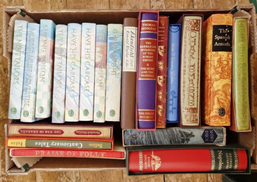 Folio Society - Dorothy L Sayer 8 vols, not in slip cases, Austen Jane 4 vols, not in slip cases, "The Complete Angler",  "Travels of a Victorian Photographer", Mark Twain, " The Discovery of the Conquest of Peru", "Fuller's Worthies", "Empires of Early Latin America" and many other titles (4 boxes)