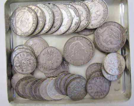 Dutch silver coins (.700) combined weight 362 grams, consisting of: 1 x 1931 One Gulden, 14 x 2 1/2 Gulden & 22 x One Gulden