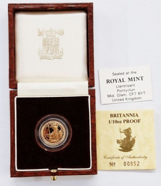 Elizabeth II (1952-2022), 1987, Gold Proof Britannia 10 Pounds, Some marks on Obverse, in original box of issue with certificate no 00852