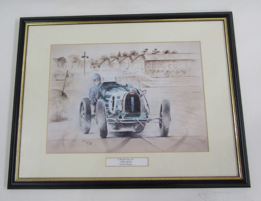 Quantity of ephemera to include motoring catalogues, eg Jaguar V12 engine, Rolls Royce, two Robert Taylor motoring prints 'Brooklands' and a framed set of 25 motoring cigarette cards and sundry motoring interest books.
