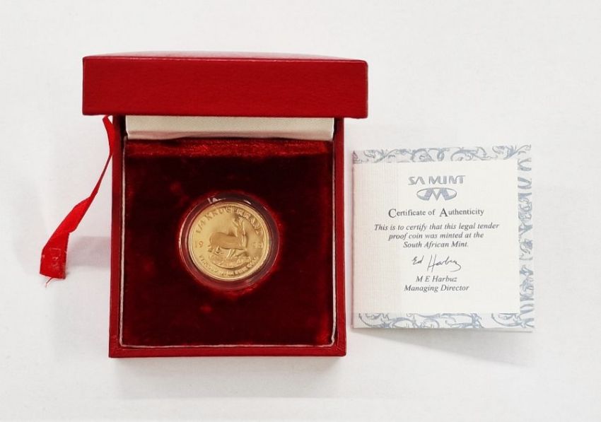 South Africa Republic 1998, 1/4 Ounce Krugerrand, Proof. From SA Mint, Limited edition to 1000, with Certificate number 430
