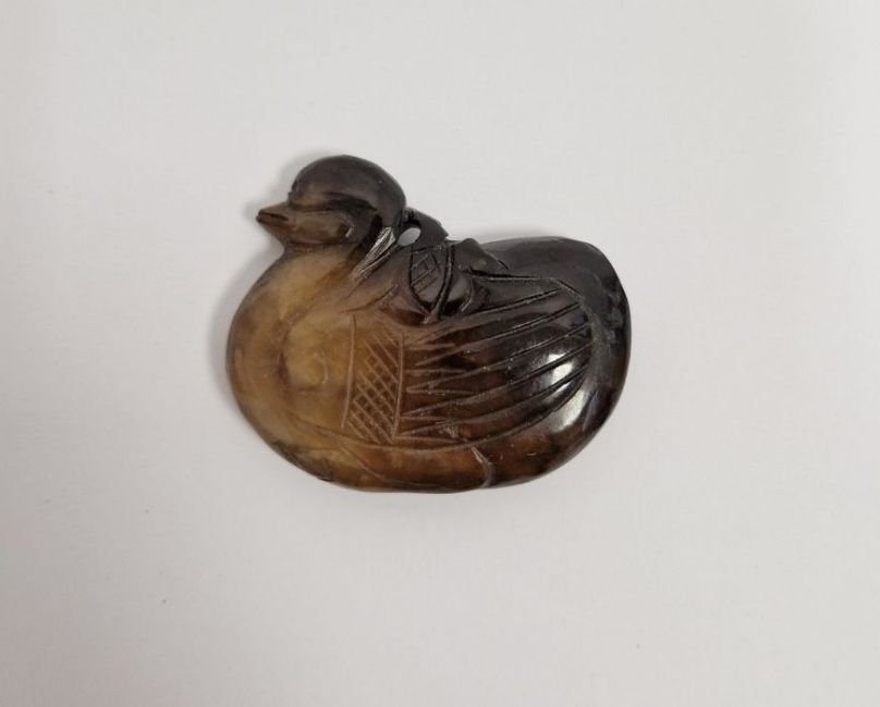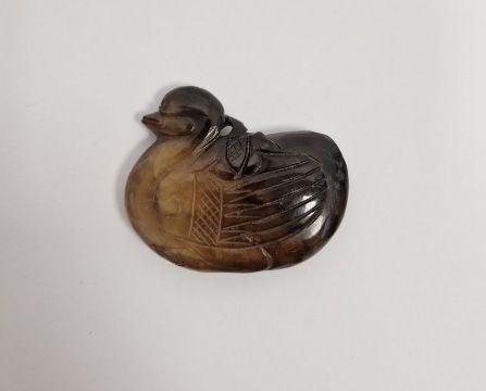 Chinese carved jade duck pendant, 5.5cm x 4.5cm