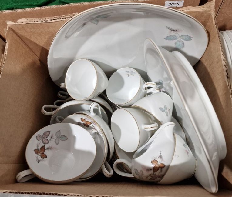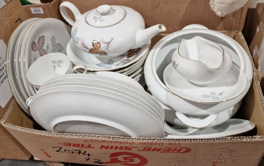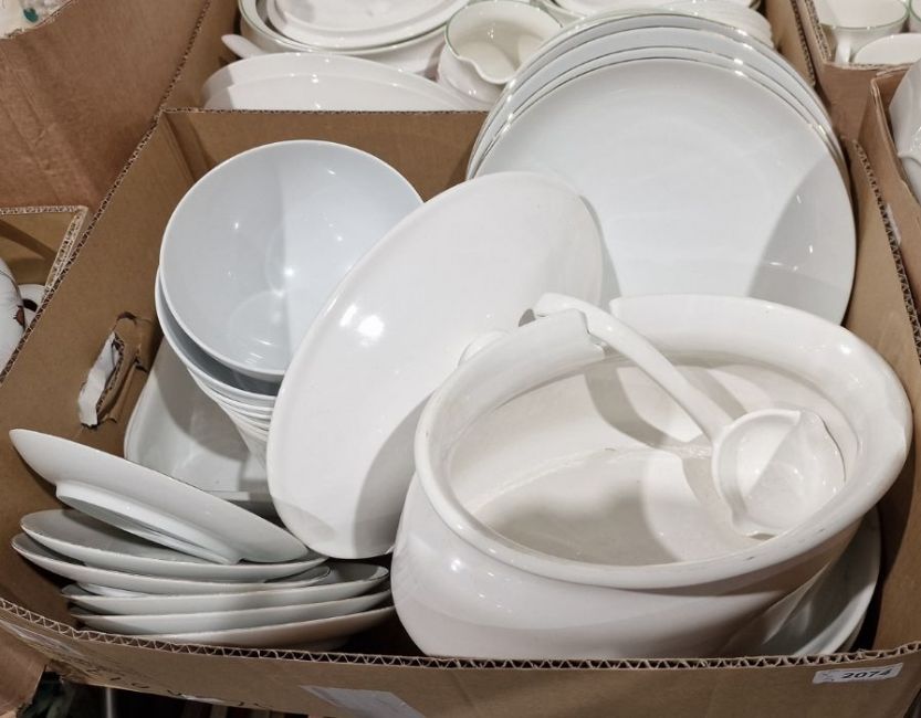 KPM and Thomas part dinner service with the same floral decorated pattern, to include gravy boat, teapot, tureens, dinner plates, bowls, cups and saucers, platters, etc, a small quantity of Thomas Germany plates and further dinnerwares (3 boxes)