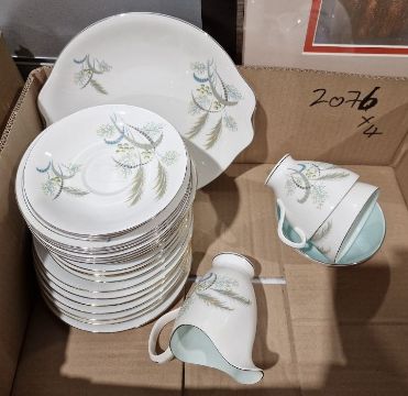 Small quantity of Royal Albert 'Festival' dinnerwares to include plates, cups and saucers, a Coalport twin-handled dish, a quantity of cut glassware to include decanters, vases, etc (4 boxes)