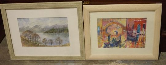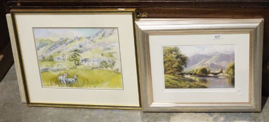 Assorted framed and glazed watercolour landscapes, prints including Colin Williamson mountainous lake landscape watercolour, a collection of hunting prints including Bittern Shooting, partridge shooting, pheasant shooting and others