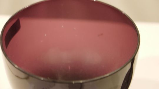 Victorian brass and cranberry glass oil lamp having panelled glass oil well, on corinthian column stand and with etched and fluted cranberry shade, clear glass chimney, 74cm high overall, a moulded and cut glass portable oil lamp and a pair of William Yeoward amethyst ale glasses of revived Georgian form (4) Condition ReportCorinthian column oil lamp - Wear throughout. Discolouration and grime throughout. No obvious chips to chimney or body. Two minor chips/nibbles to bottom of shade. Crease lines at flute folds.Portable oil lamp - Chip to base of chimney. Scratches to base. Wear and grime throughout.Yeoward glasses - Base wear to both. Some bubbles in glass. Surface wear and some marking throughout