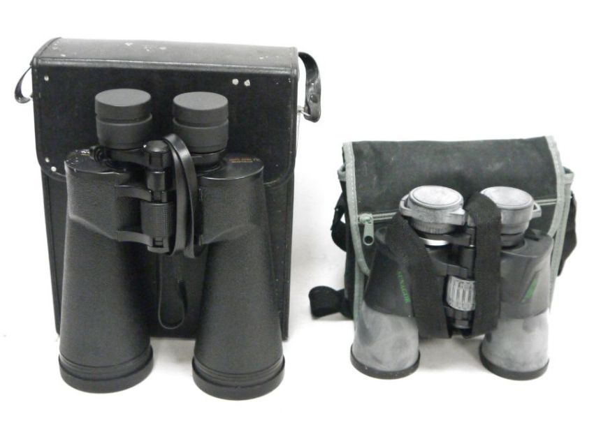 Pair of Sunagor Mega Zoom binoculars, no.15-80x70, in carrying case and another pair of Sunagor binoculars, in case (2)