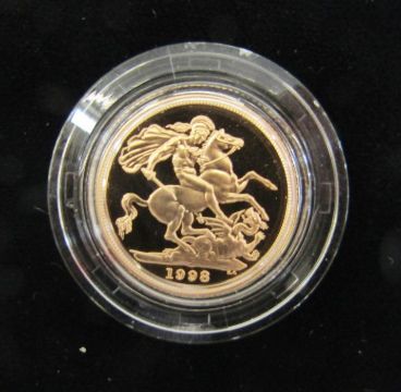 Gold proof sovereign 1998, in Royal Mint box without certificate.