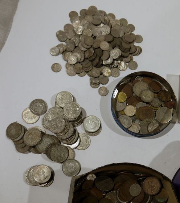 Large quantity of various coins (1 tin)