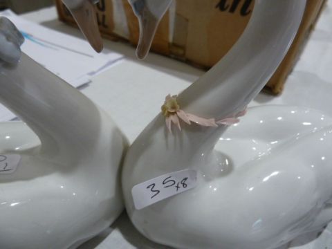 Some minor chipping to flowers and with small chips to the pink collared swan's collar, otherwise in good order.
