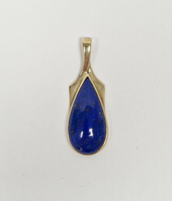9ct gold and lapis lazuli pendant set single teardrop-pattern polished stone