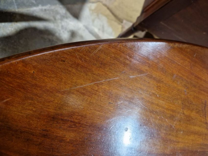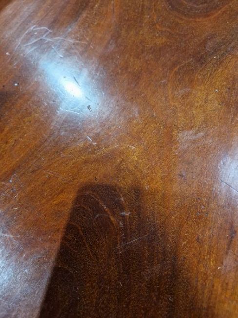 Late Georgian mahogany swingleg dining table of oval form, raised on cabriole legs with claw and ball feet, 71cm high x 134cm wide x 49cm deep approx. when folded Condition ReportSurface scratches, scuffs and knocks, Areas of fading/discolouration. General wear and teardiameter with leaves up approx 142cm