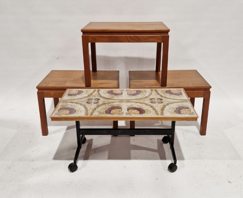 Three teak coffee tables and a tiled topped coffee table