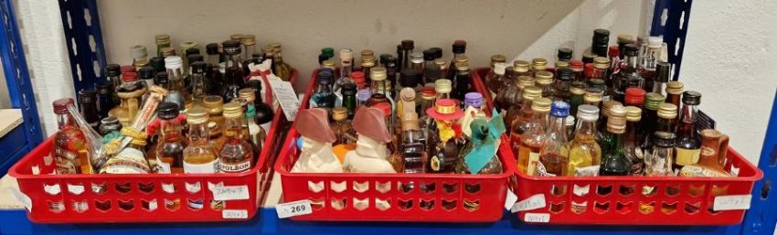 Quantity of miniature spirits, liqueurs and fortified wines including Napoleon brandy novelty bottles, Glamis Castle whisky, Madeira, Tobermory 10yo and many others (100-120 approx) (3 boxes)