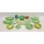 Collection of Carltonware and Crown Devon salad moulded plates and dishes, printed and impressed marks, including a footed leaf-shaped bowl, three large oval leaf dishes applied with tromphoid tomatoes, a sauce boat, a tomato-shaped teapot with stalk handle and other items and a pottery ribbed jug glazed in green and blue