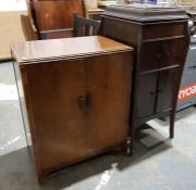 Victorian mahogany shaving stand, the circular vanity mirror over shelf and a lower circular drum-