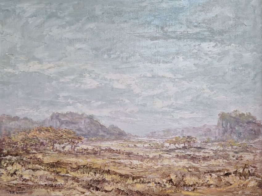 "Inyanga Rhodesia", landscape with hills, approx. 1970's, 45cm x 59cm