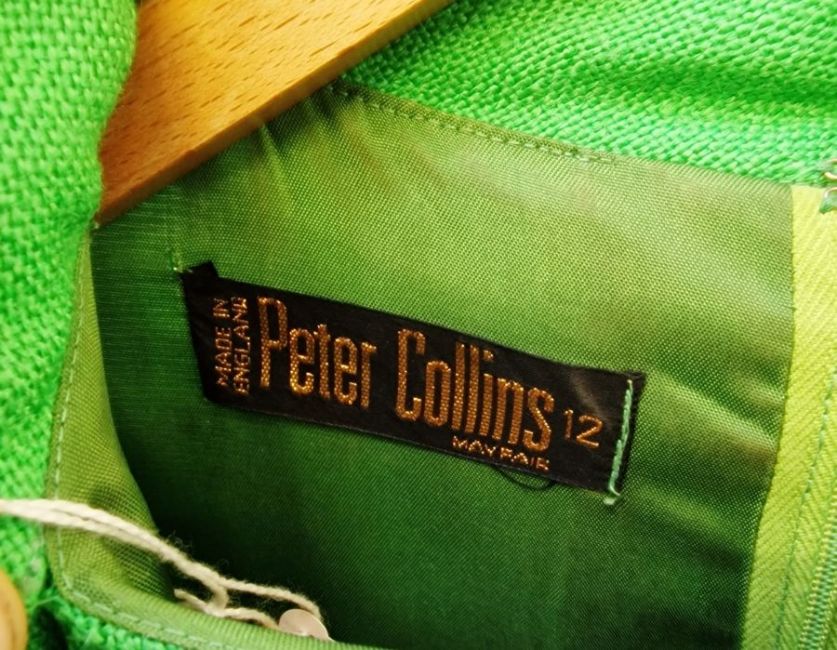 1960's cotton party dress with yellow forsythia printed onto a cream ground, yellow lining to the bodice with spaghetti straps, small bow and matching belt, with a stiff petticoat, a blue and white cotton sundress with spaghetti straps with matching belt, unlabelled, a Peter Collins linen green shift dress, sleeveless, with faux belt, green button and brass details, size 12, a 1950's/60's silk day dress, a yellow cotton day dress and a brown and cream silk cocktail dress labelled 'Bonwit Teller' (6)