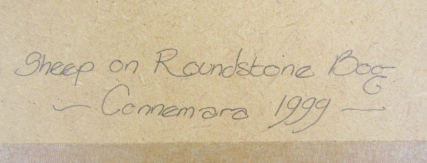 "Sheep on Roundstone Bog, Connemara 1999", signed and labelled verso, 23.5cm x 28.9cm (with receipt from the Clifden Art Gallery, Connemara dated 99)
