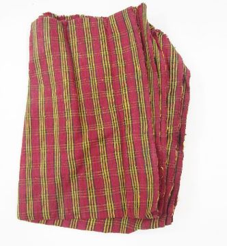 Collection of runners and wall hangings including two Bhutan runners woven with bold geometric patterns, two kilims, perhaps Moroccan, striped in cream, red, black and another with striped yellow and red fabric (5)