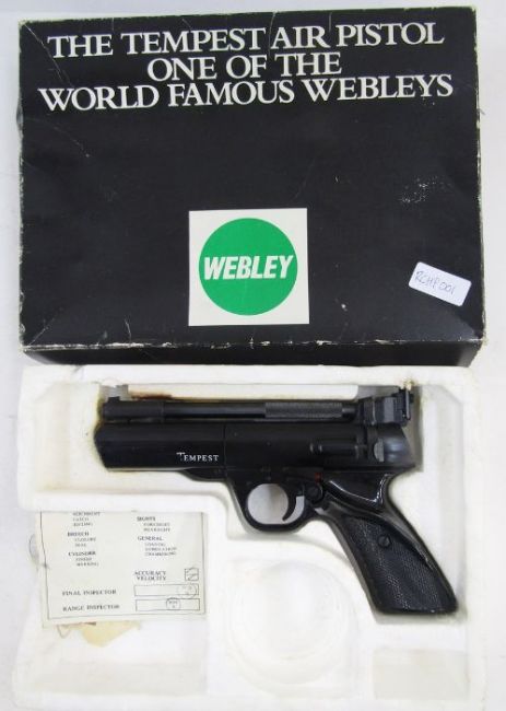 Webley Tempest .22 air pistol in original box. Permit number 53/V/005939/2022