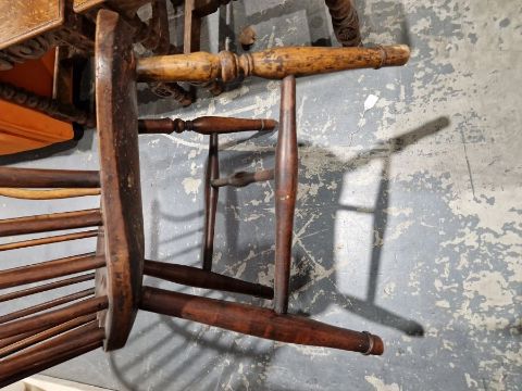 Antique beech and elm windsor-style armchair with spindle back, 97.5cm high