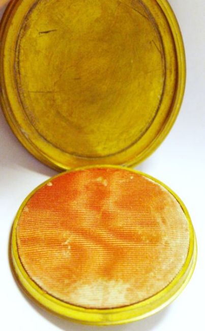 19th century portrait miniature, head and shoulders portrait of a lady in pearl earrings, oval, 4.5cm x 4cm in gilt metal and leather folding case (Ivory Submission Ref: 5EBJRPXL)