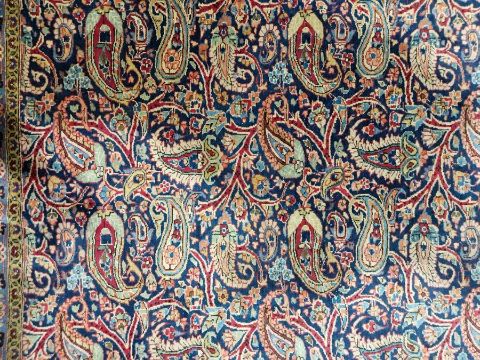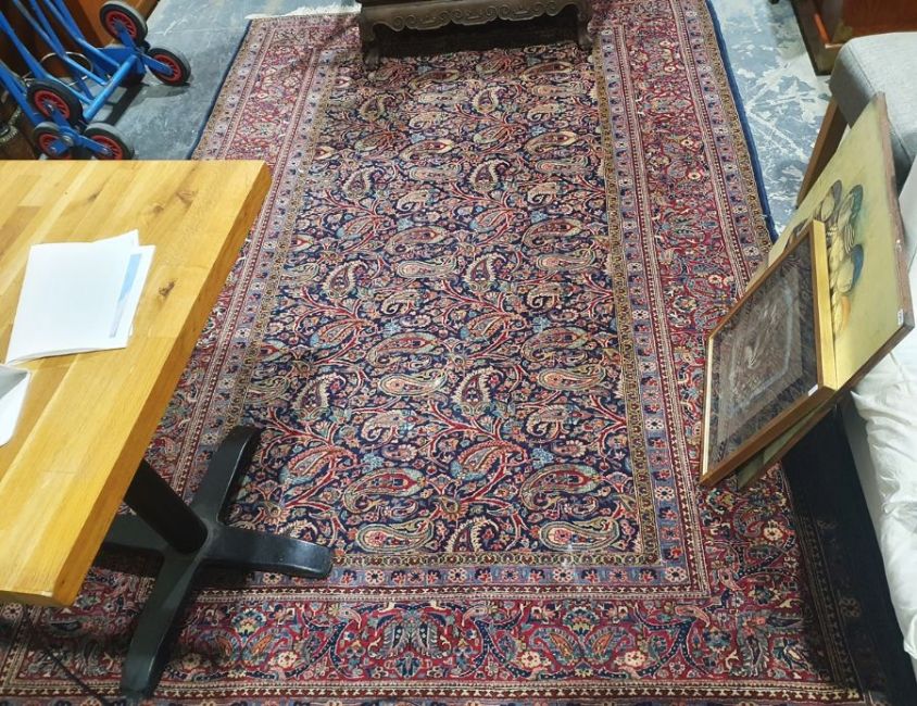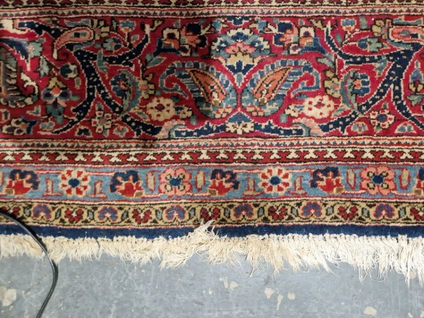 Wear, uneven wear and light edge wear. Possible areas of fading and discolouration. Small tear to one edge. General wear and tear.