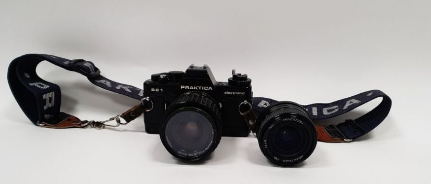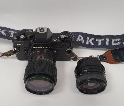 Praktica BC1 electronic camera with Hanimex lens and a Praktica PB Pentacon lens