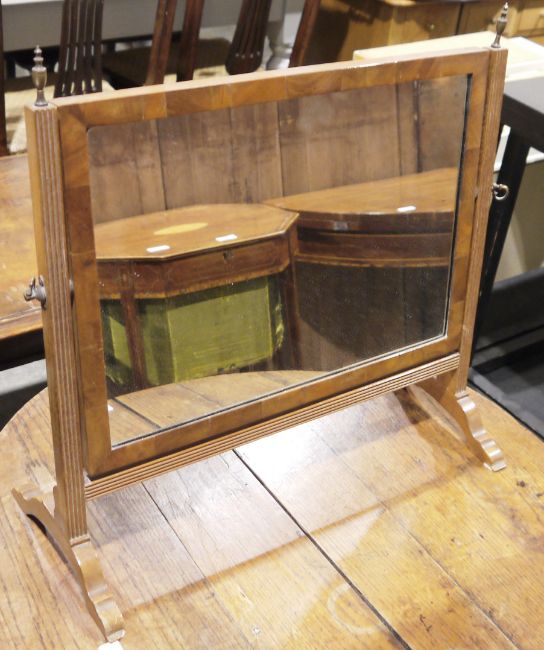 Georgian oak tilt-top table of oval form, raised upon tripod cabriole legs, 70cm high x 63cm wide x 68cm deep and a dressing table swing mirror