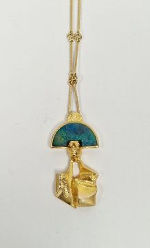 Lapponia, Finland by Bjorn Weckstrom (b.1935) 14K gold pendant and chain, the pendant in the form of head and shoulders and bearing polished black opal stone crescent headdress, marked B8, possibly 1970’s, gross weight 9.5g approx.