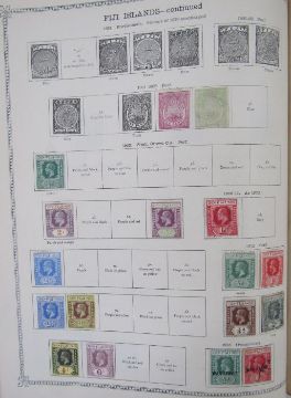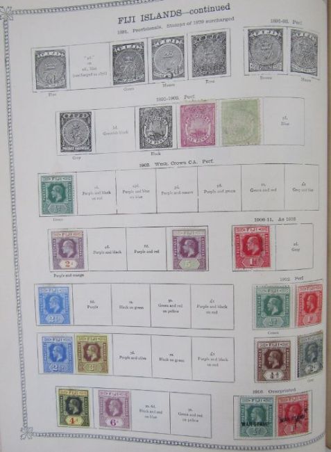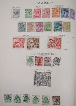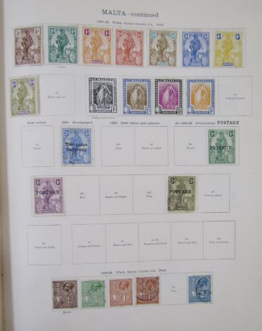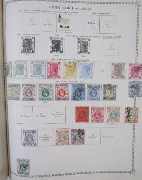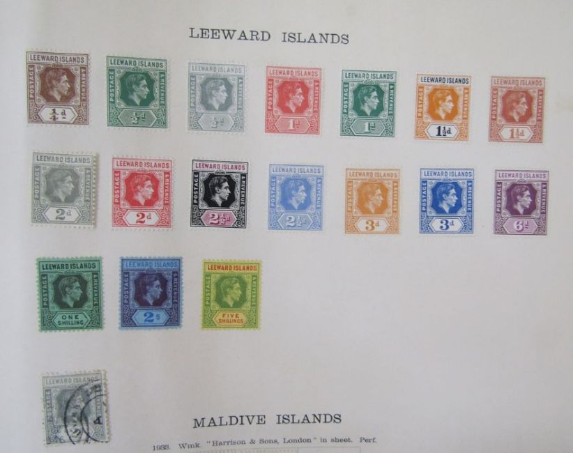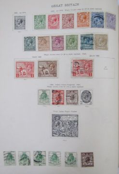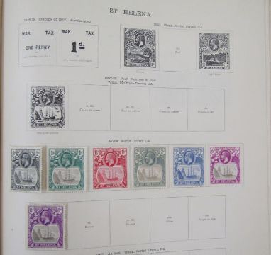 GB & British Empire stamps: ‘The Ideal’ albums in 3 volumes covering pre-1914, 1915-1930 and from 1930 including some KGVI, c. 250 pages, mint and used definitives, commemoratives, official, fiscals, special delivery, higher values seen throughout, up to $10 in Hong Kong, 5/- in Leeward Islands & Malta, 5 rupees in India & Mauritius and 100 piastres in Palestine, KGV 1935 silver jubilee omnibus and good range/interest, GB pages missing in 1st volume.