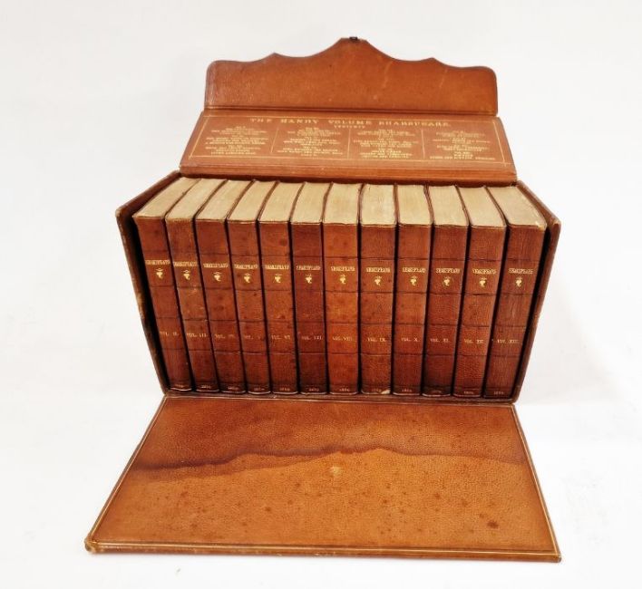 "The Handy Volume of Shakspeare (sic)" containing vols 2-13, full morocco with gilt titles, within a morocco case with brass clasp