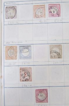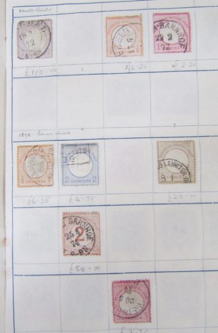 Germany stamps: empire, Weimar, and Third Reich mint/used definitives, commemoratives, charity, winter relief and air, Zeppelins in 35-page album with Chicago World Exhibition flight overprint 1M carmine (SG 510, cat £650) amongst them, empire includes 1/4 g violet (SG 1, cat £150), Third Reich includes scarce Wagner commemorative, 20+10 pfg greenish blue (SG 519, cat £160).