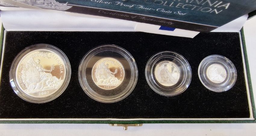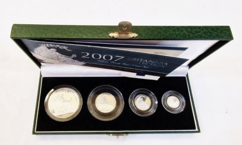 2007 Britannia silver proof coin set Royal Mint boxed & certified, The 2007 Britannia silver proof four coin set contains four coins struck in 0.958 silver