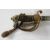 Officers naval sword with etched decoration to blade, gilt brass pierced guard with anchor decoration, wire bound fish skin grip, and leather and brass scabbard.