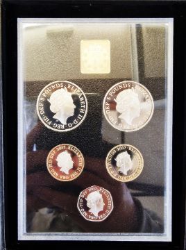 UK Proof Sets (2), 2015 Proof 8 Coin Year Set with certificate of authenticity £2 down to 1p, 2017 Chief Engravers master Proof Set 5 coins, King Canute £5, House of Windsor £5, £2 Jane Austen and First World War with Sir Isaac Newton 50 pence