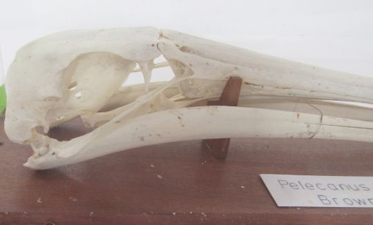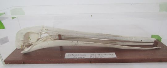 Brown pelican (pelecanus occidentalis) skull housed in a perspex case, 40cm long