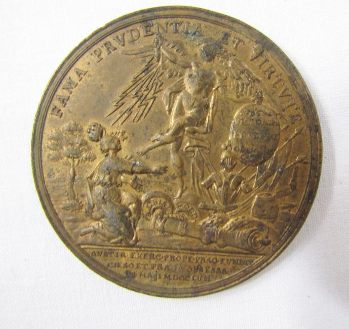 Davison's Nile Medal 1798 in bronze gilt, engraved with recipient to reverse 'Jn Parker', together with two other medals.