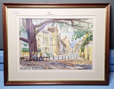 Tony Matts  Watercolour drawing Street scene, signed, 25cm x 35cm  Janet Fairman Watercolour drawing Study of a hare, 34.5cm x 24cm (2)