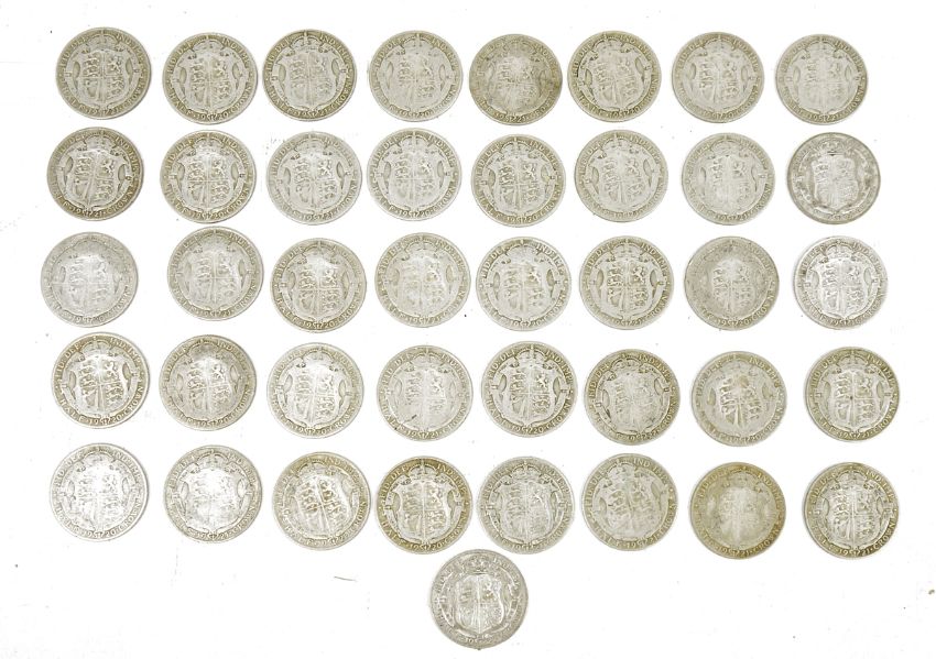 Quantity of George V crown coins and others, predominantly early 1920's (2 boxes)
