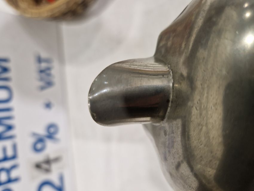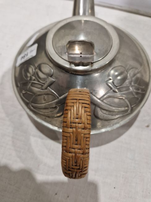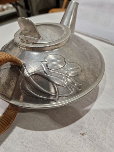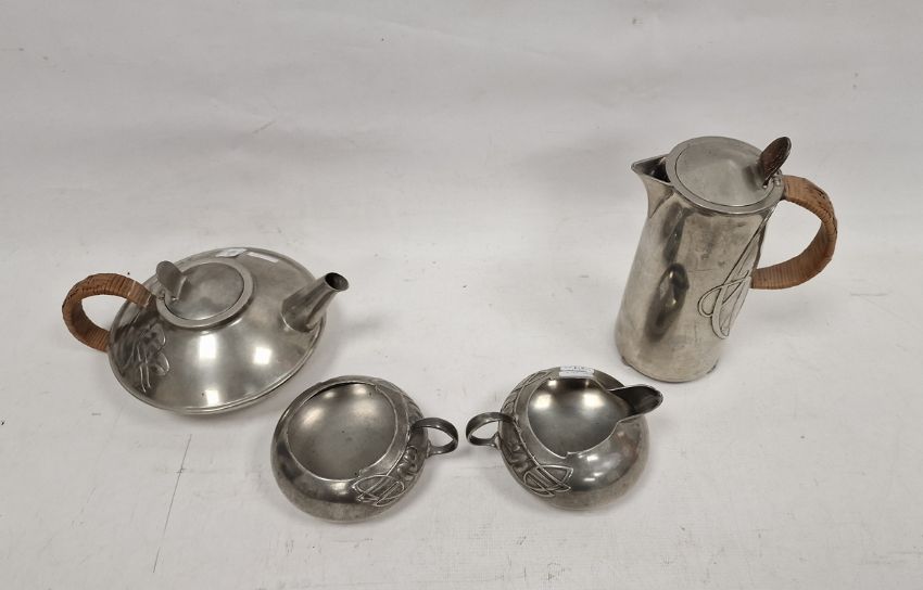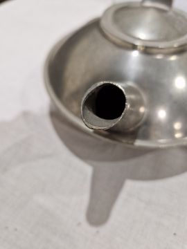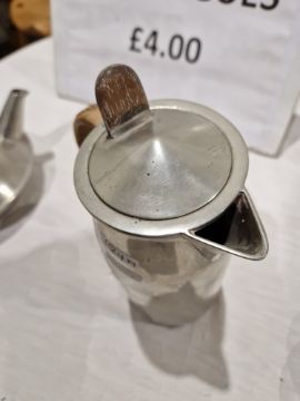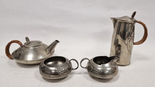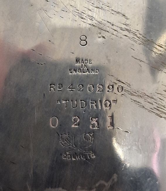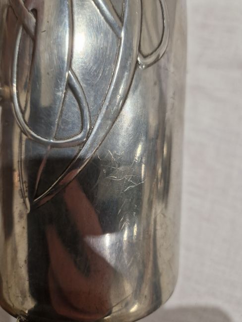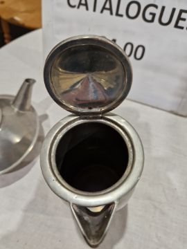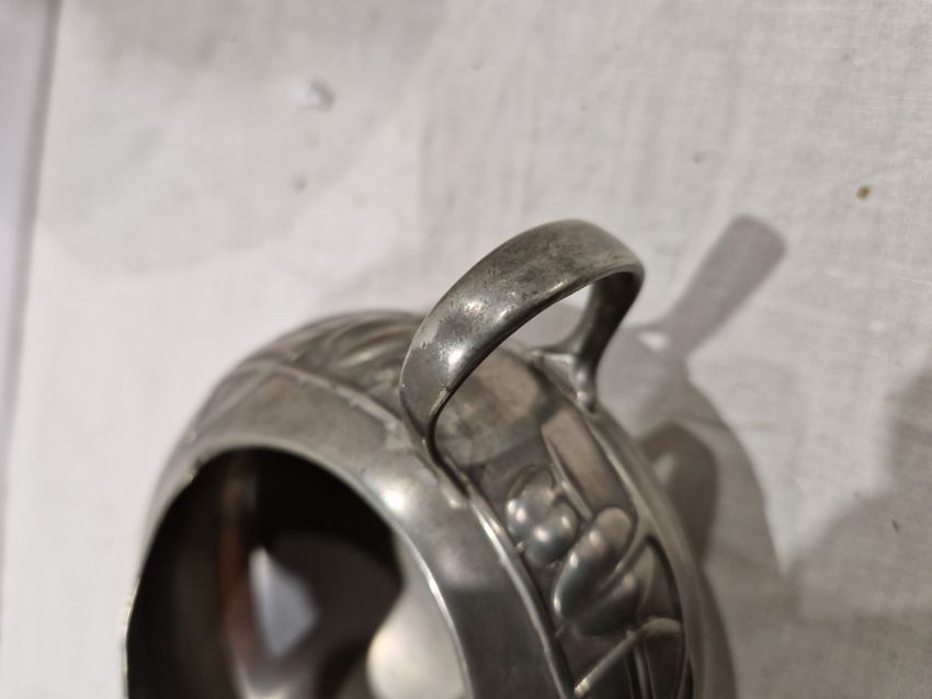 All with light surface scratches and marks. Appears to be a solder mark or repair to the foot of the water jug. Cream jug with dent to the lip. General wear and tear to all.