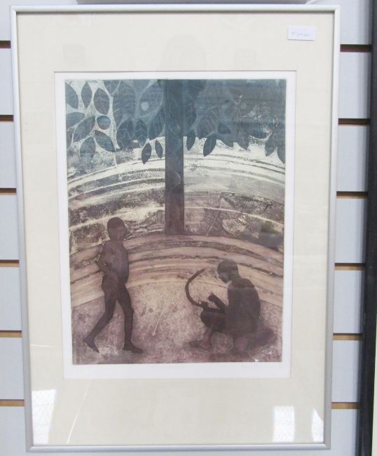 After Rosie Tomlinson  Coloured print  "Earth Dance", titled, signed and dated 1990 in pencil, numbered 9/25, 31.5cm x 41.5cm