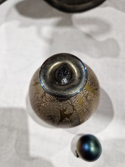 Isle of Wight bottle with broken stopper and part of stopper still wedged in bottle. All pieces with light surface marks and general wear and tear.