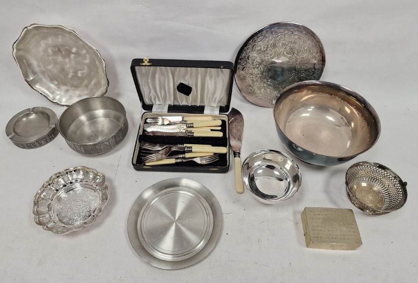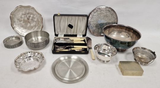 Quantity of silver-plated items including coasters, small punch bowl and flatware