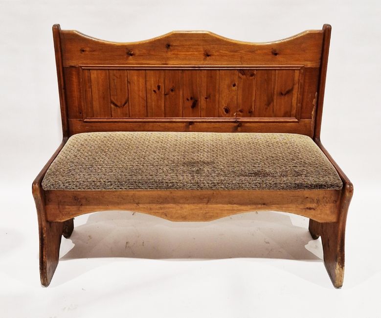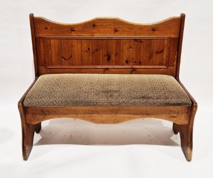 Pair of 20th century pine settles with upholstered seat base, 103cm high x 124cm wide x 54cm deep (2)