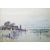 Harry Woods (ex 1893-1905) Colour drawing  River landscape with sailing vessels and cottage, probably Suffolk, signed and labelled verso, 25cm x 36cm