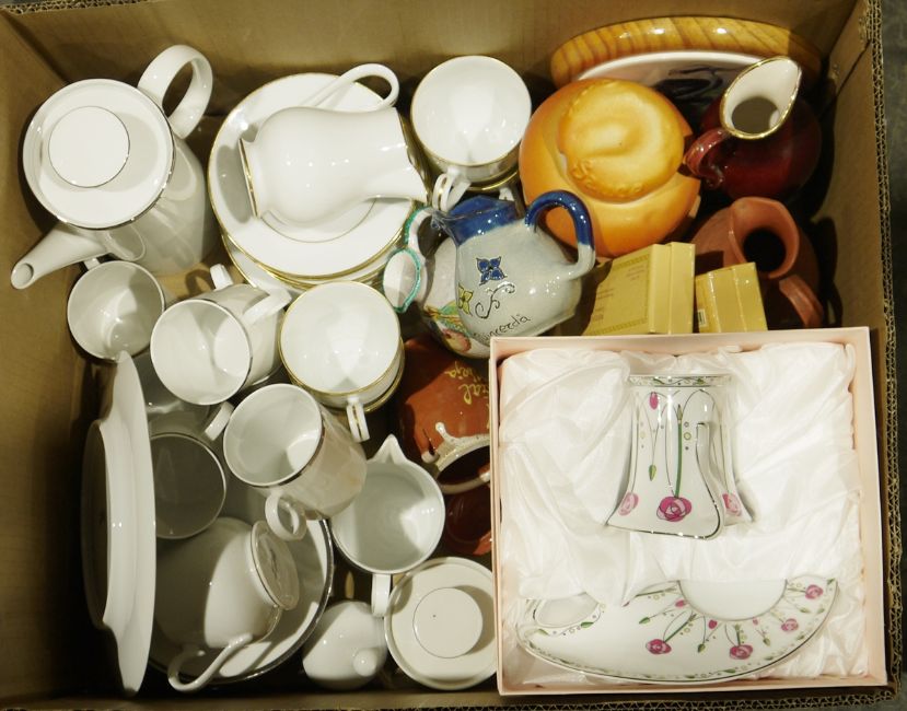 Thomas (Germany) white medallion part tea service, two boxed cup/saucer sets, Leonardo Collection decorated with stylised roses, other ceramics, etc (2 boxes)