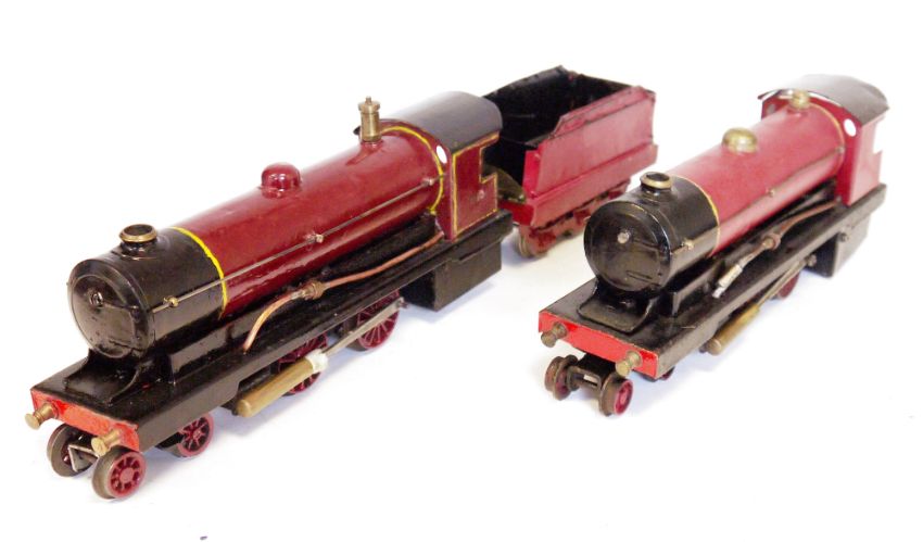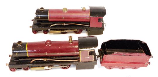 Two possibly Bowman live steam locomotives to include 4-4-0 No.012 maroon livery and a similar 4-4-0 with six wheel tender red livery (both appear repainted)