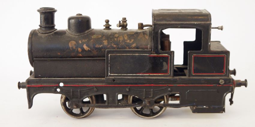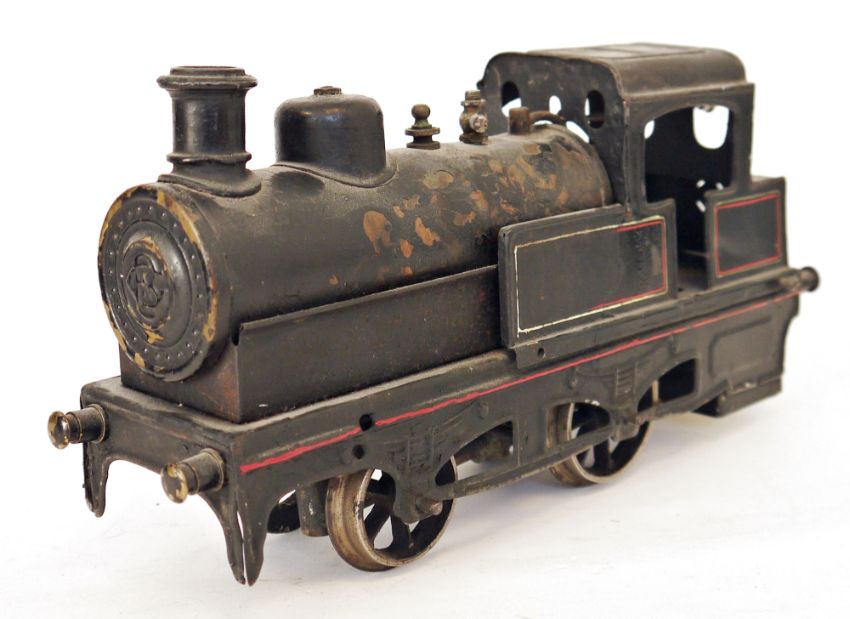 Possibly Bing 2-2-0 live steam locomotive (no tender) with black and red, white double lined livery